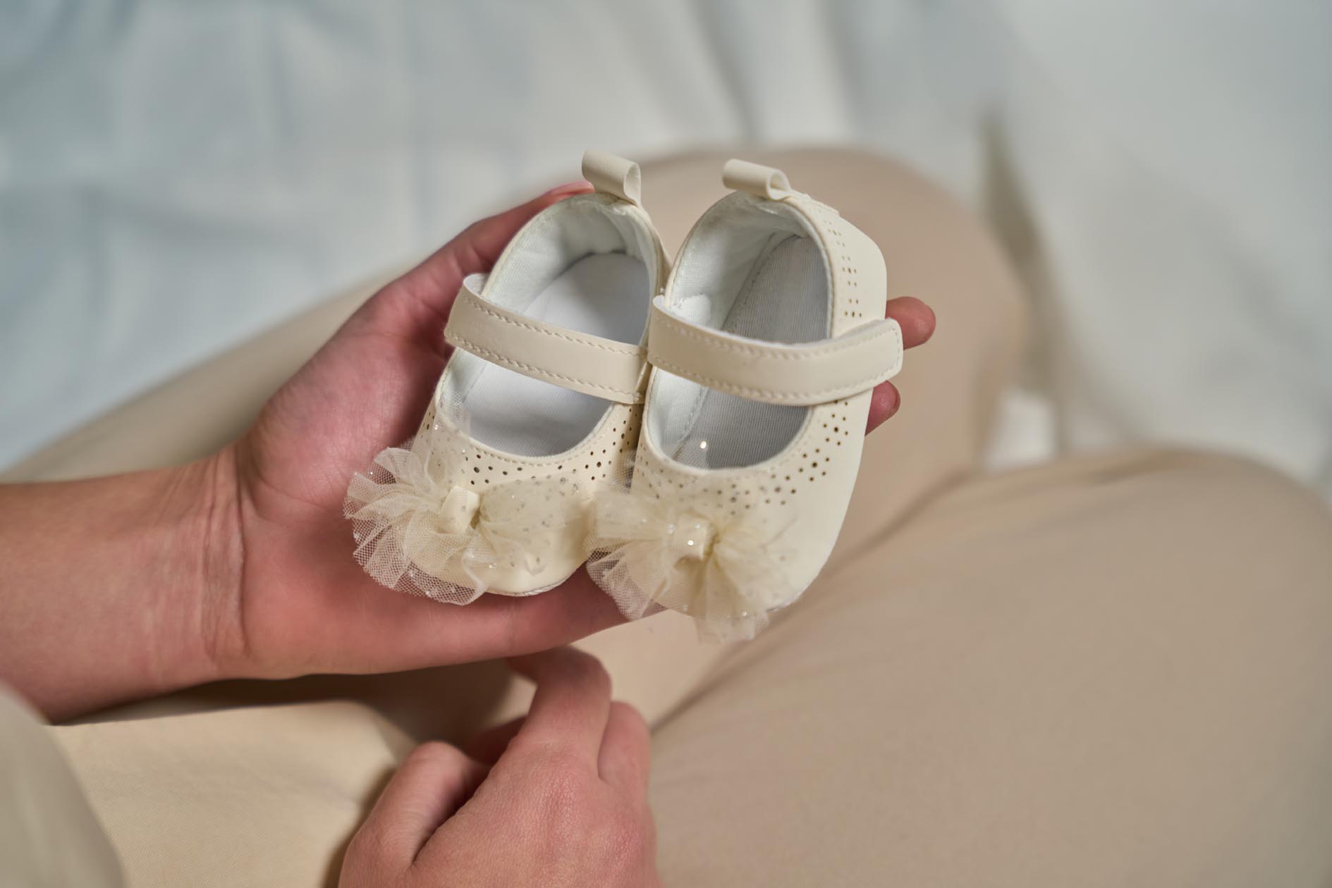 È molto importante non avere fretta di acquistare le scarpe per la vostra neonata. I primi passi, infatti, sono quelli effettuati tra le mura domestiche e servono per abituare al movimento la muscolatura di piedi e gambe. Questi devono necessariamente avvenire a piedi nudi o, eventualmente, con le apposite calzine antiscivolo.