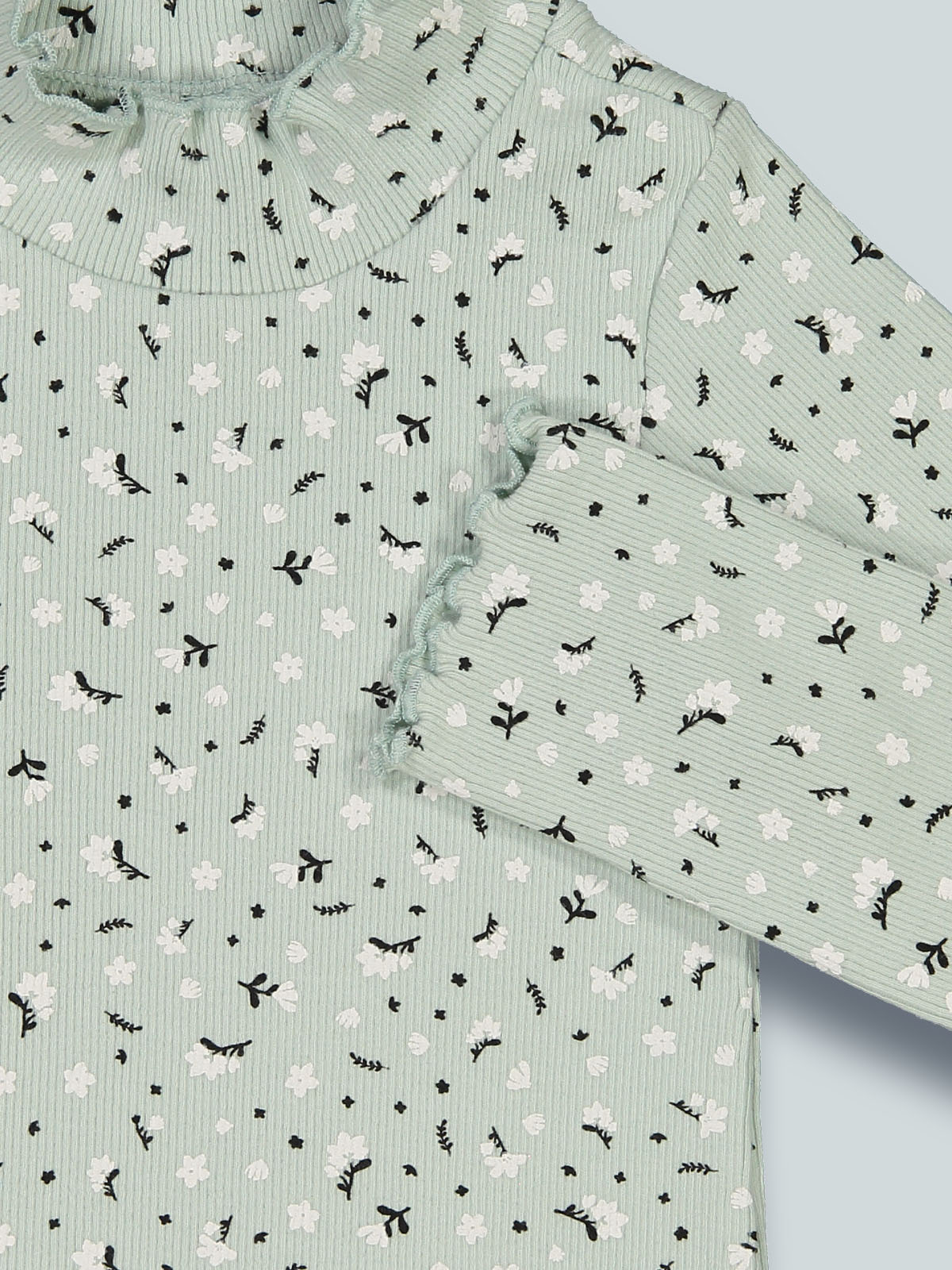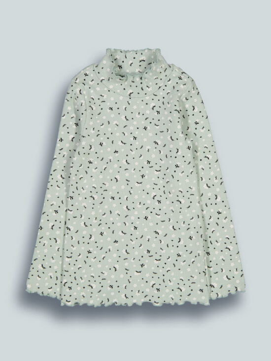 Lupetto manica lunga in morbida e calda costina fantasia fiorellini. Un capo caldo e molto femminile.