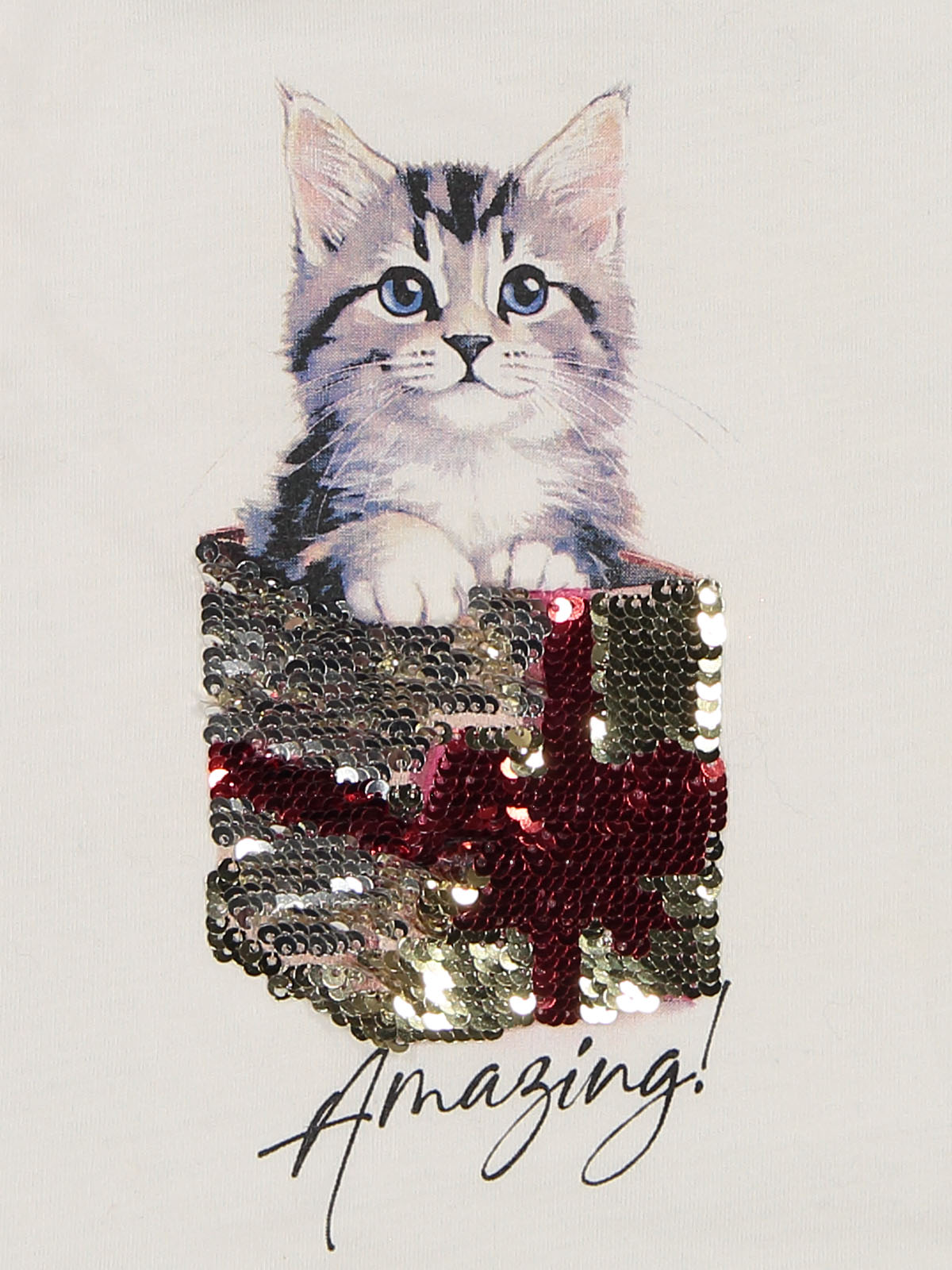 Tshirt in morbido e caldo cotone manica lunga, stampa fotografica con paillettes reversibili sul davanti. Una delle nostre famose tshirt interattive per far divertire la vostra bambina.