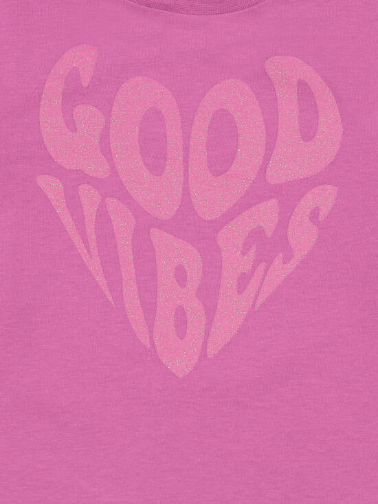 Tshirt manica lunga in morbido e caldo cotone, scritta sul davanti con glitter. Una tshirt simpatica ideale da indossare a scuola.