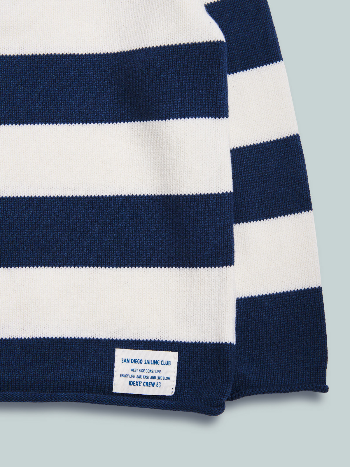 Maglioncino girocollo in morbido tricot rigato, etichetta sul fondo. Un capo “evergreen” facile da abbinare e che non puo’ mancare nell’armadio del vostro bambino.