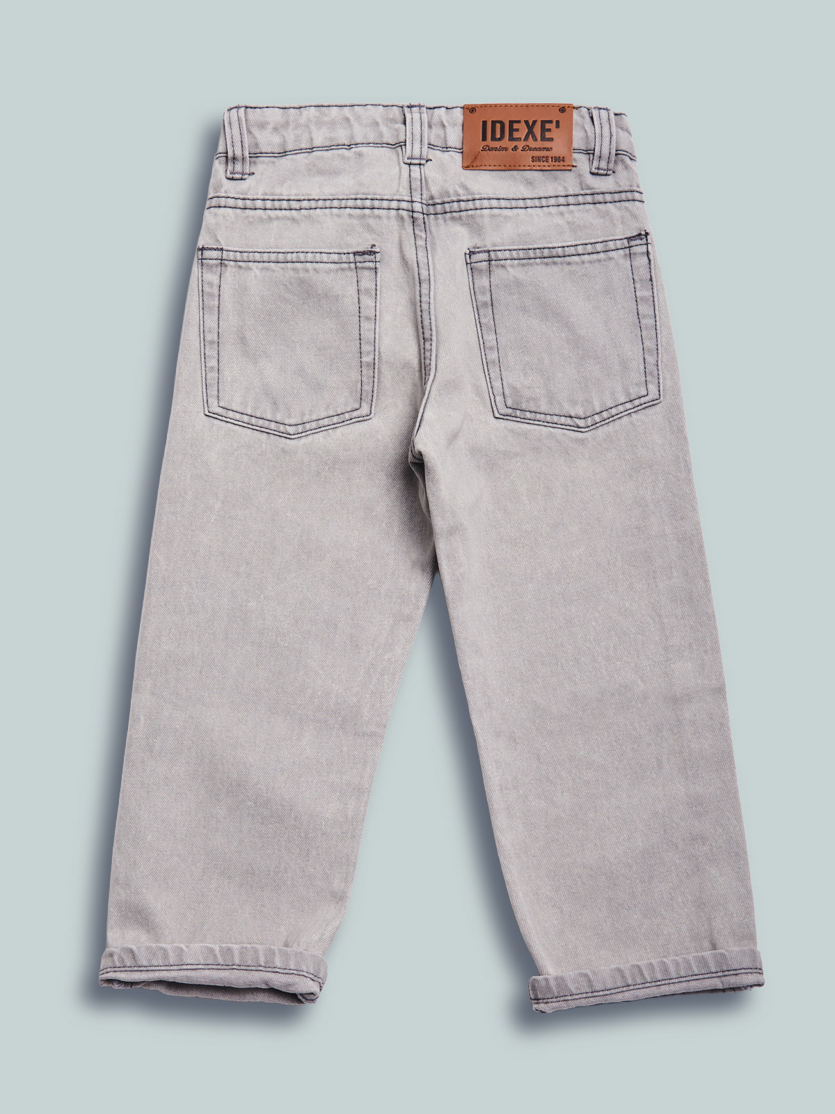 Pantaloni in denim grigio non elasticizzato. Modello cinque tasche relaxed fit dalla linea diritta e morbida. Apertura davanti con zip e bottone, vita interna con elastico regolabile. Lavaggio chiaro effetto “vintage”. Un evergreen del guardaroba, da abbinare a qualsiasi look di stagione.