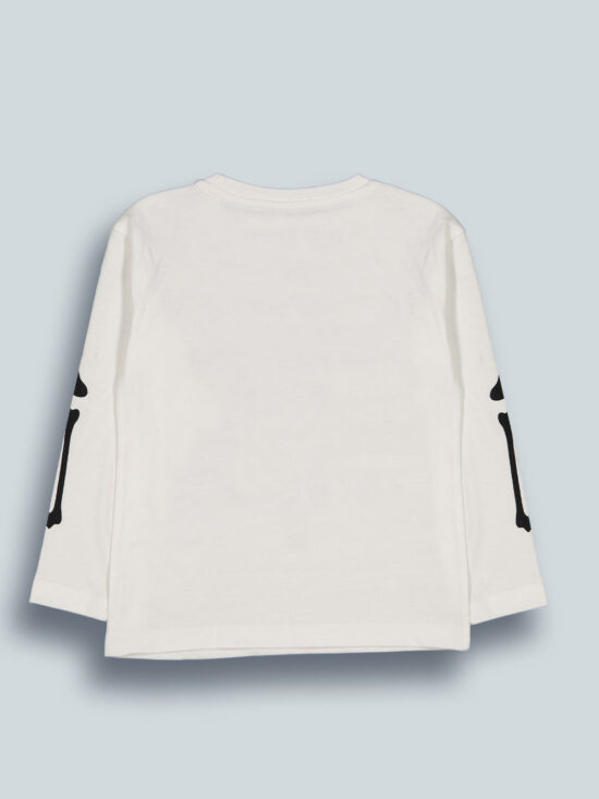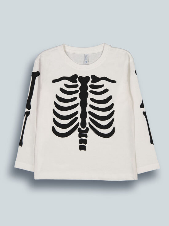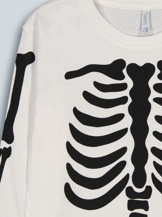 Tshirt manica lunga girocollo in caldo cotone. Stampa scheletro sul davanti e maniche. Il capo perfetto per un halloween da paura!