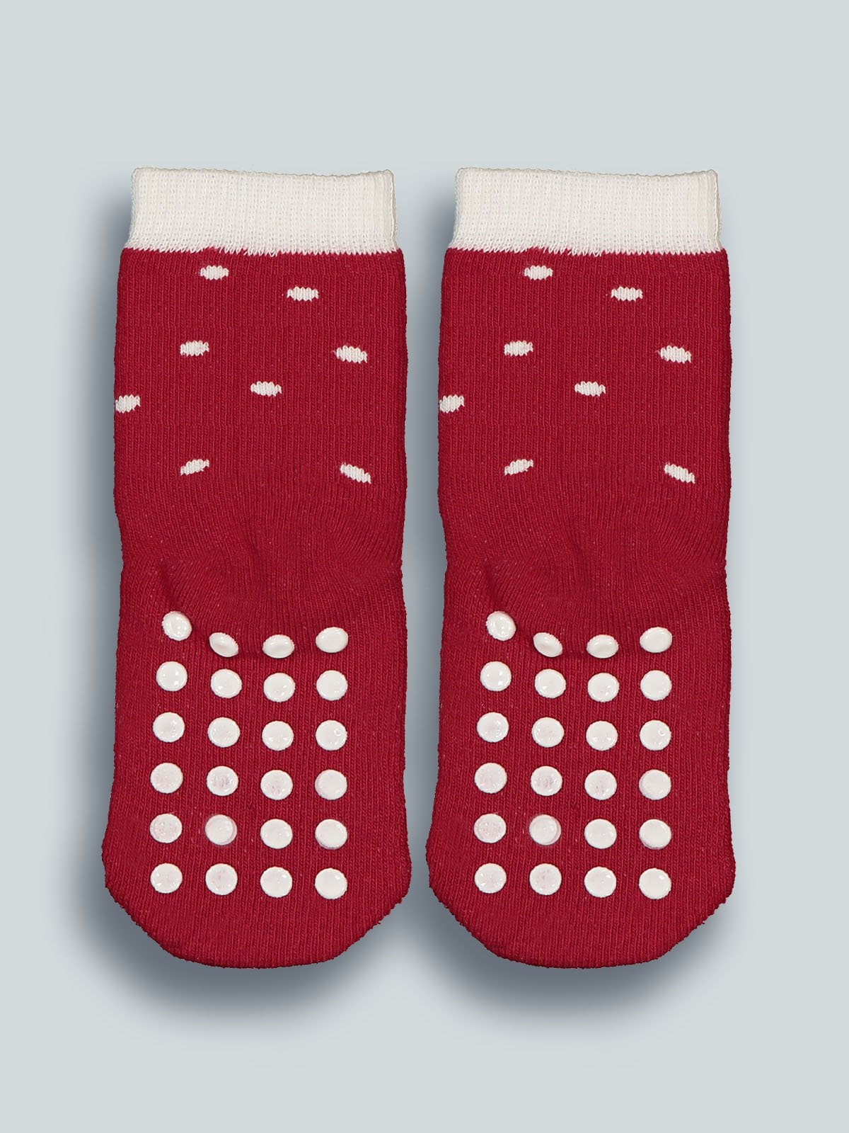 Calzini antiscivolo in morbido misto cotone. Simpatico orsetto natalizio con dettagli in lurex. Pratici gommini antiscivolo sulla pianta del piede. Splendida idea regalo per il periodo delle feste.