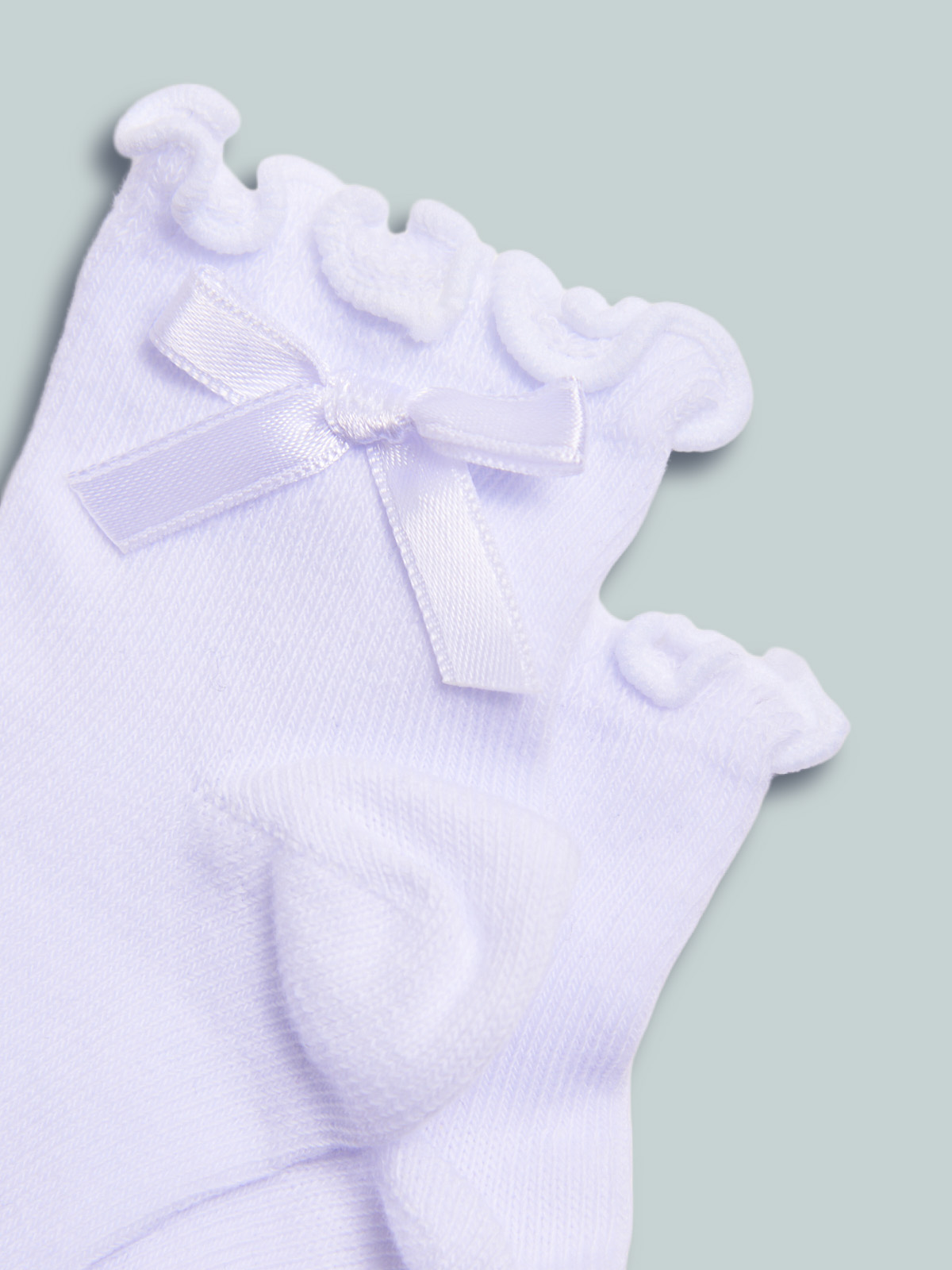Calzini lunghezza sopra caviglia in morbido misto cotone con fiocco. Adatti alle occasioni piรน chic. La proposta ideale per uno stile curato ed elegante dalla testa ai piedi.