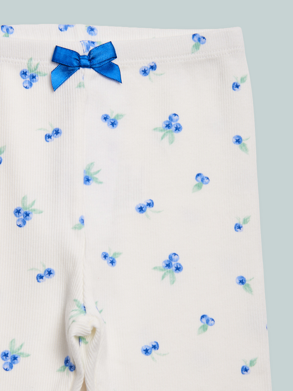 Leggings in morbido tessuto costina con vita elasticata per maggiore comoditร , fantasia mirtilli. Il fiocco in raso in vita dona al capo un aspetto estremamente fashion. Ideali da indossare tutti i giorni.