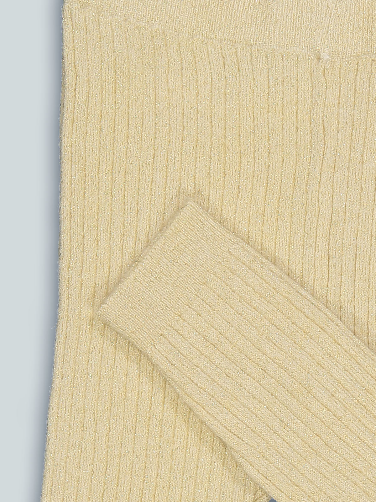 Leggings in maglia di morbido misto cotone lurex con lavorazione a costina. Vita elasticata per maggiore comoditร  e libertร  di movimento. Un capo dall’anima chic, caldo e perfetto per l’inverno.