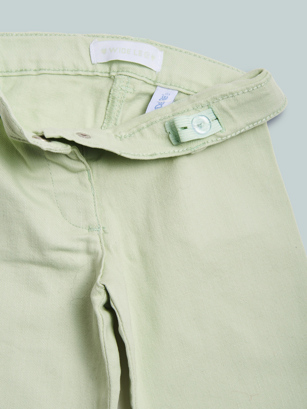 Pantaloni in morbido drill colorato. Vita regolabile e apertura tramite bottone per maggiore comoditร . Vestibilitร  wide leg. Un capo comodo e al passo con la moda.