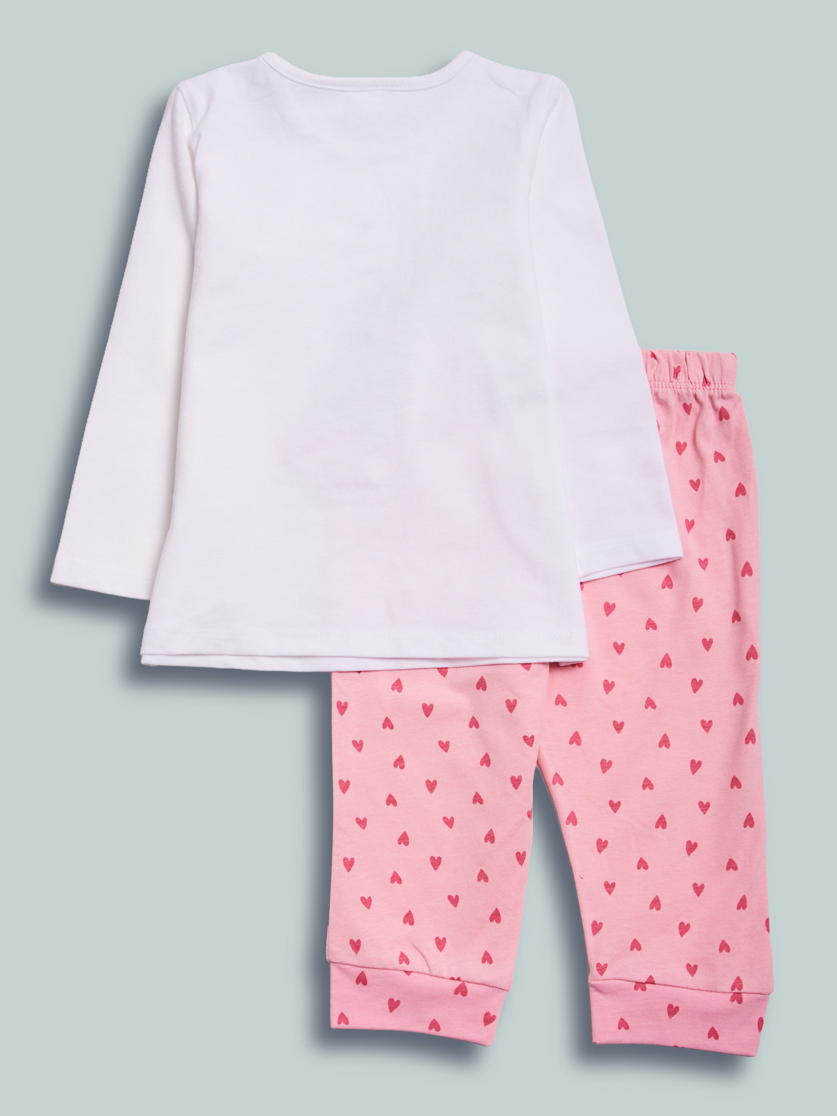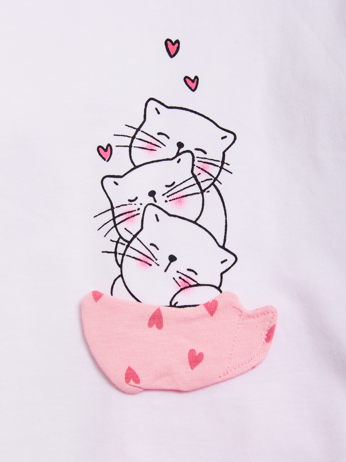 Pigiama due pezzi in cotone. Tshirt manica lunga con pratica apertura sulla spalla grazie ai bottoncini a pressione. Tenera stampa gattini con tazza tridimensionale. Pantaloni basic in fantasia cuori. Vita elasticata per maggiore comoditร . Un pigiama perfetto, morbido e confortevole, ideale per fare dolci sogni!