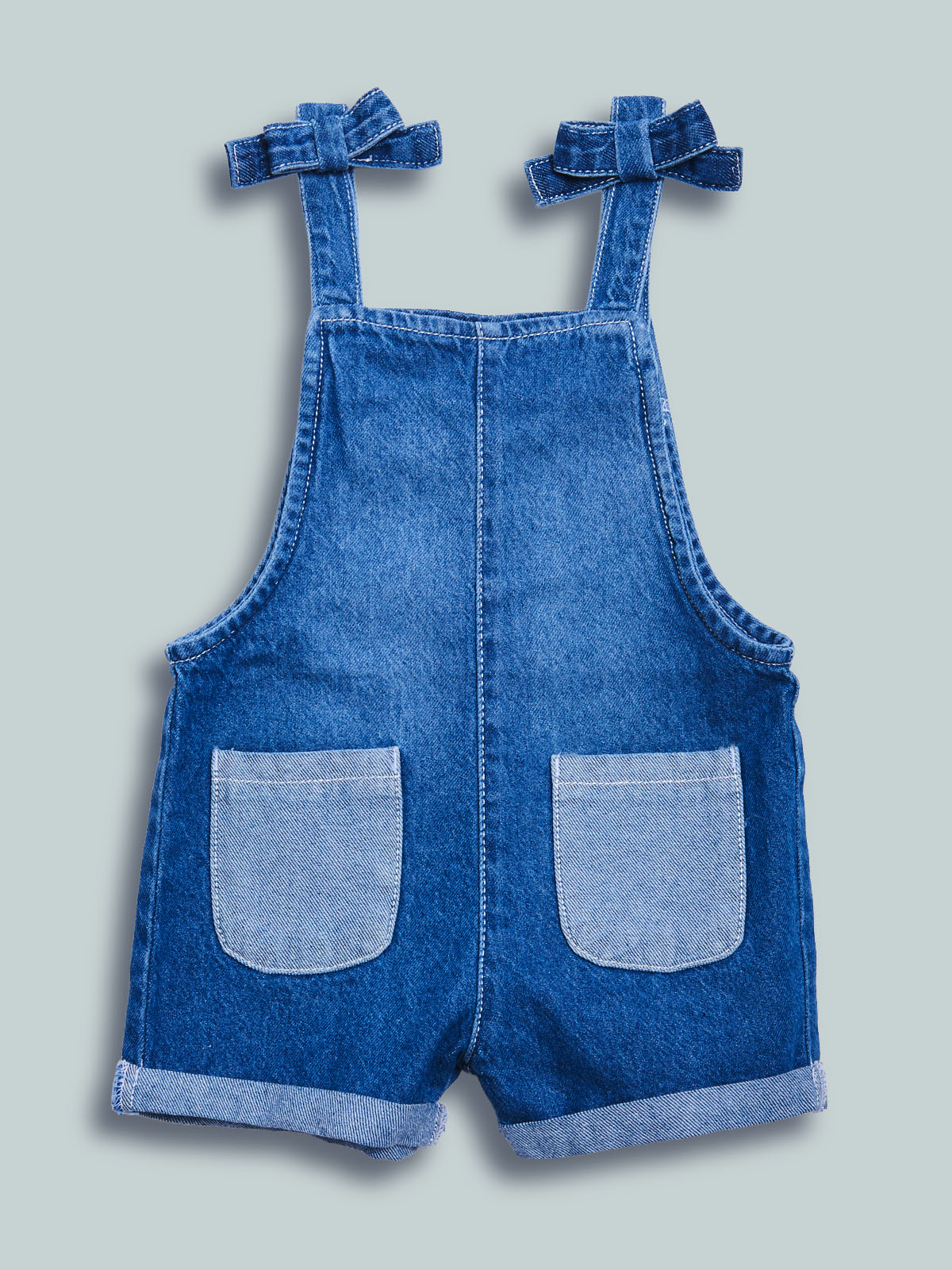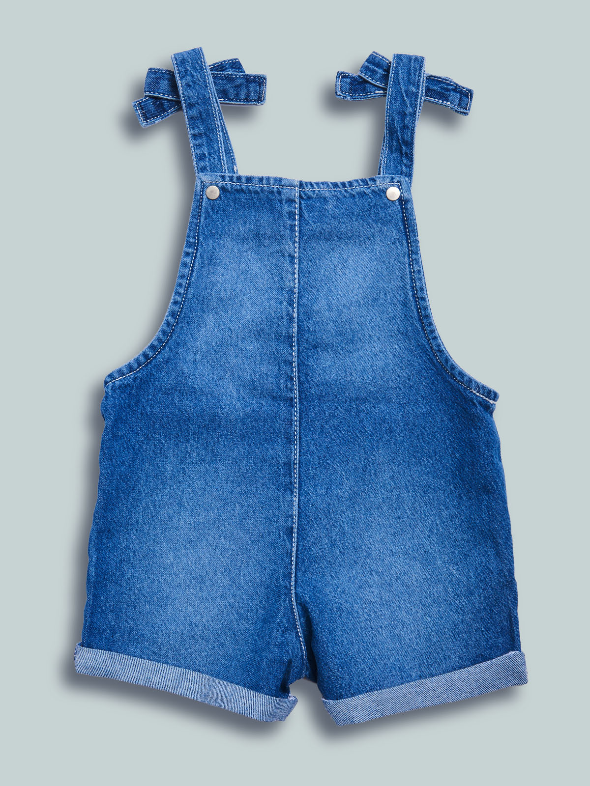 Salopette shorts in morbido denim. Comode e pratiche bretelle con bottoni dietro che rendono possibile la regolazione per una vestibilitร  adatta ad ogni bambina. Tasche davanti per maggiore femminilitร . Un capo decisamente sfizioso che non perde di praticitร , ideale da abbinare alla tshirt della collezione.