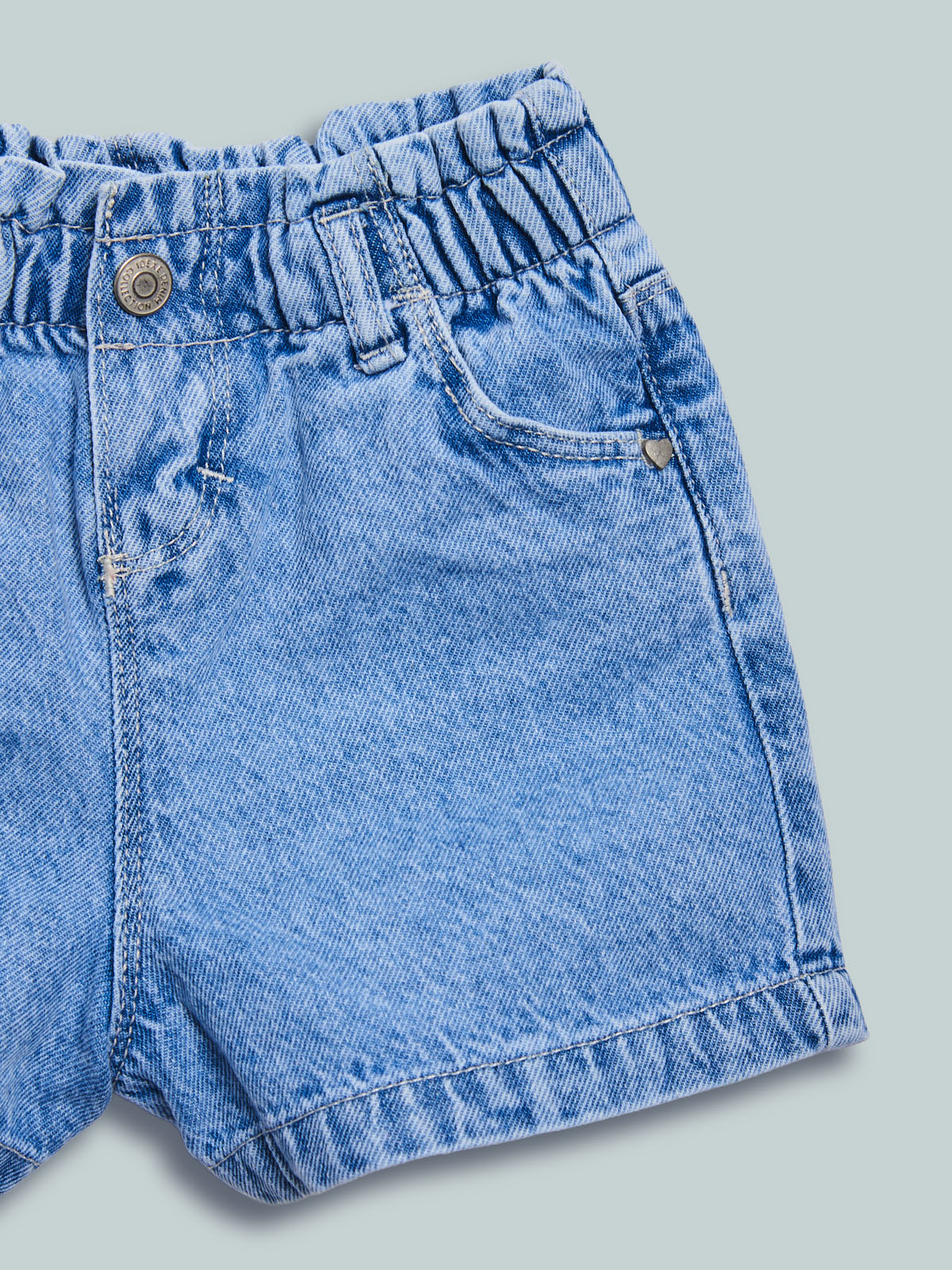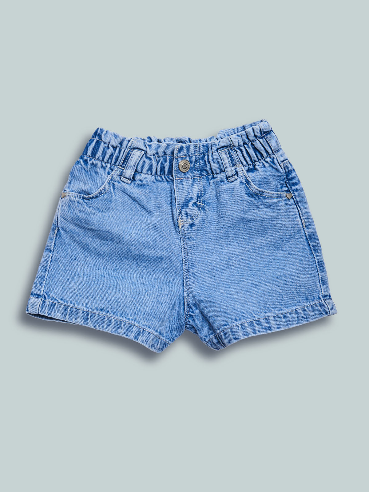 Shorts in morbido denim con vita elasticata e apertura tramite bottone per maggiore comoditร . Un capo versatile e ideale da abbinare con facilitร  a tutto il guardaroba.