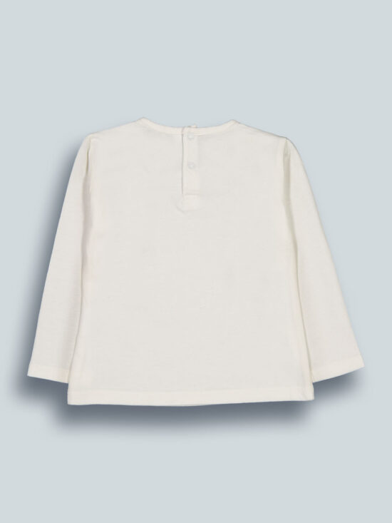 Tshirt in caldo cotone manica lunga con pratica apertura sul dietro grazie ai bottoncini a pressione. Tenera stampa conigli. Un capo di facile abbinamento e ideale da indossare all’asilo e nel tempo libero.