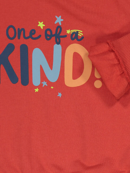 Completo due pezzi in morbida felpa leggera. Maglia girocollo con collo, polsi e fondo in costina. Pratica apertura su spalla con bottoncini a pressione. Stampa sul davanti. Pantaloni con morbido elastico per vita e fondo gamba. Un capo pratico per essere comodi tutto il giorno.