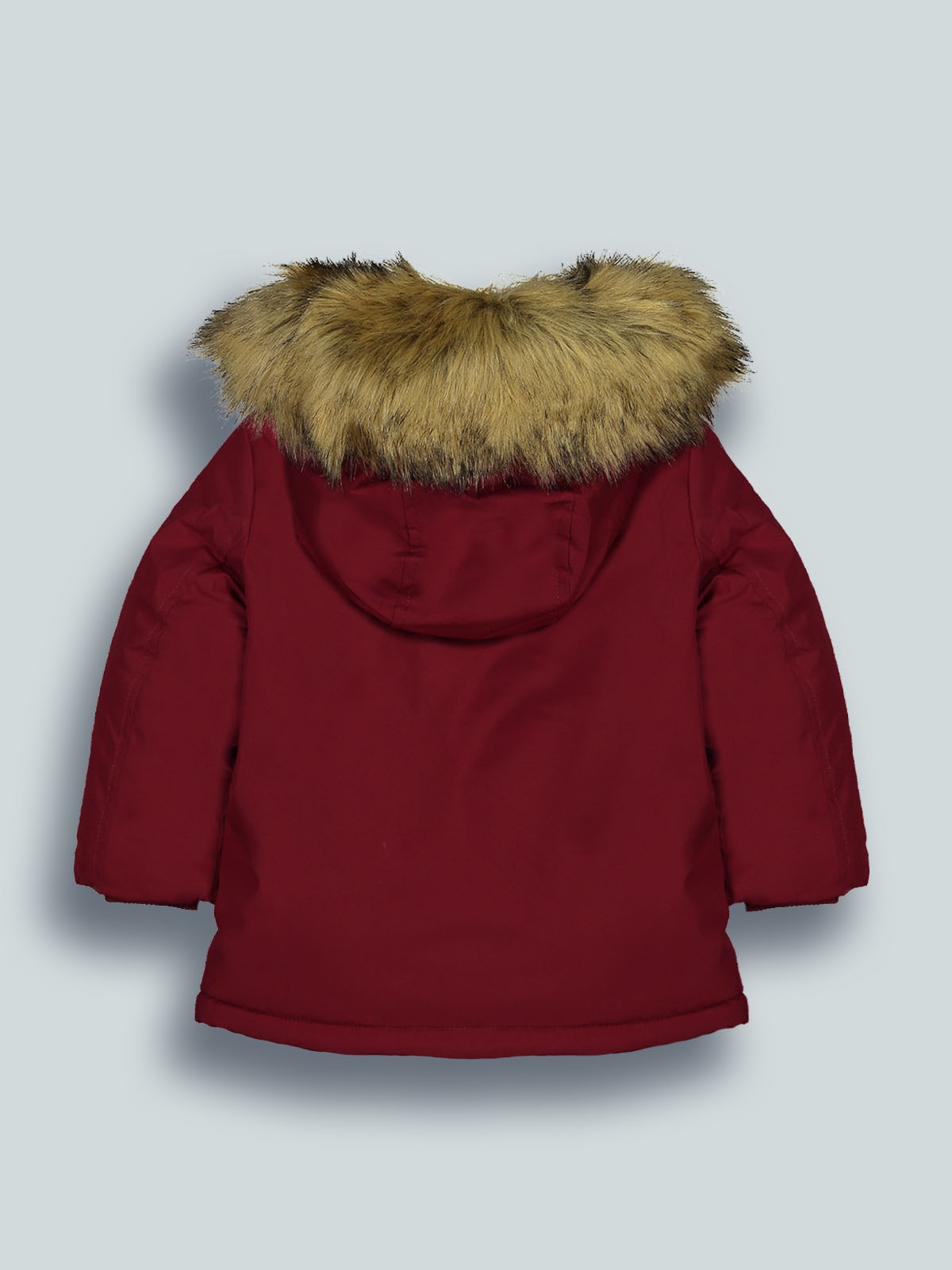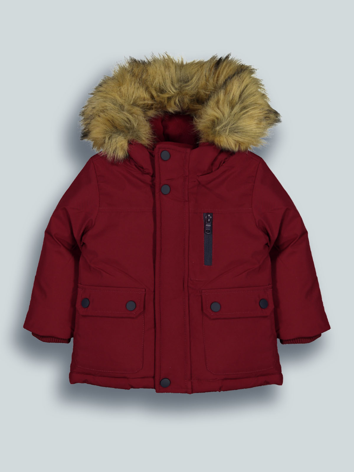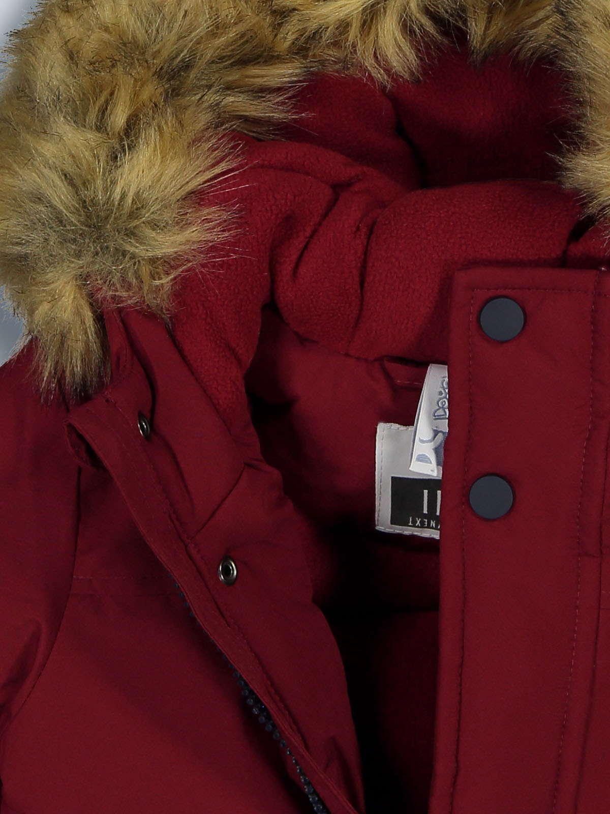Parka in nylon spalmato imbottito pesante, cappuccio con bordo in pelo staccabile con pratici bottoni a pressione. Aperto davanti con zip sotto alla patta, tasche davanti con pattine e zip a contrasto sul petto, polsi salvaneve in morbida costina. Fodera interna in pile e nylon, interno cappuccio in pile. Il capo ideale per rimanere bene al caldo.