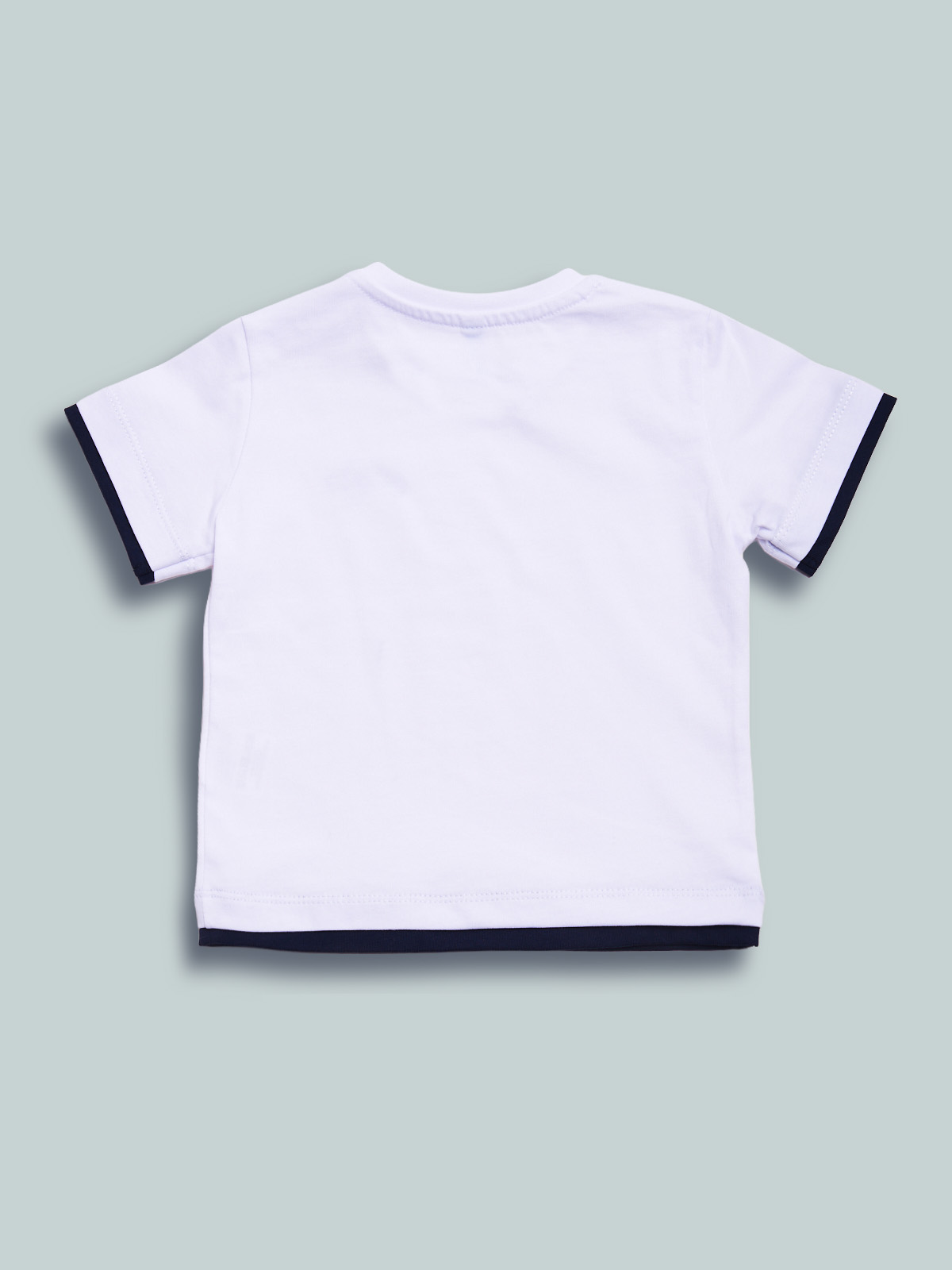Tshirt manica corta girocollo in cotone con dettagli in contrasto, stampa sul davanti. Un capo che con il suo stile classico si abbina bene sia ad un look casual che ad uno piรน elegante.