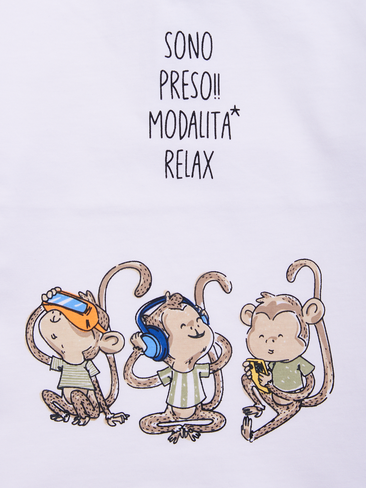 Tshirt manica corta girocollo in cotone, pratica apertura con bottoncini a pressione sul retro. Stampa humor davanti. Una tshirt simpatica e divertente.