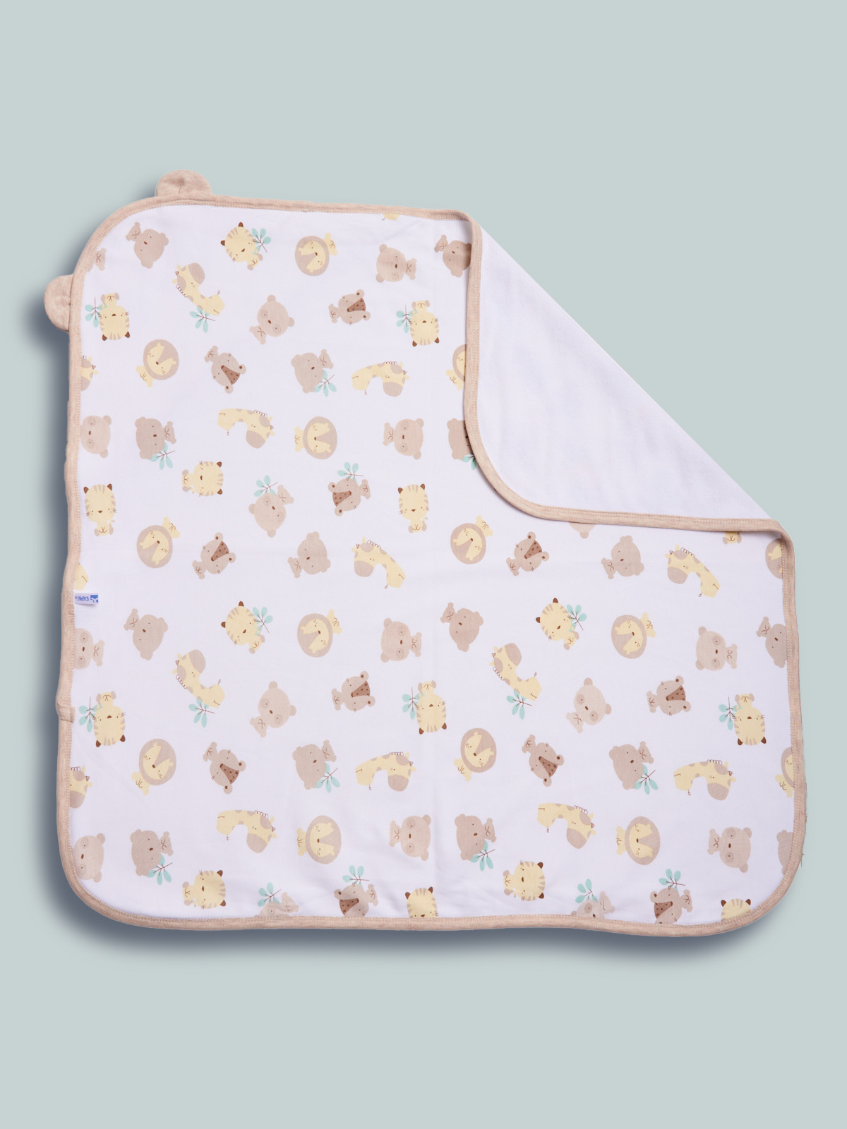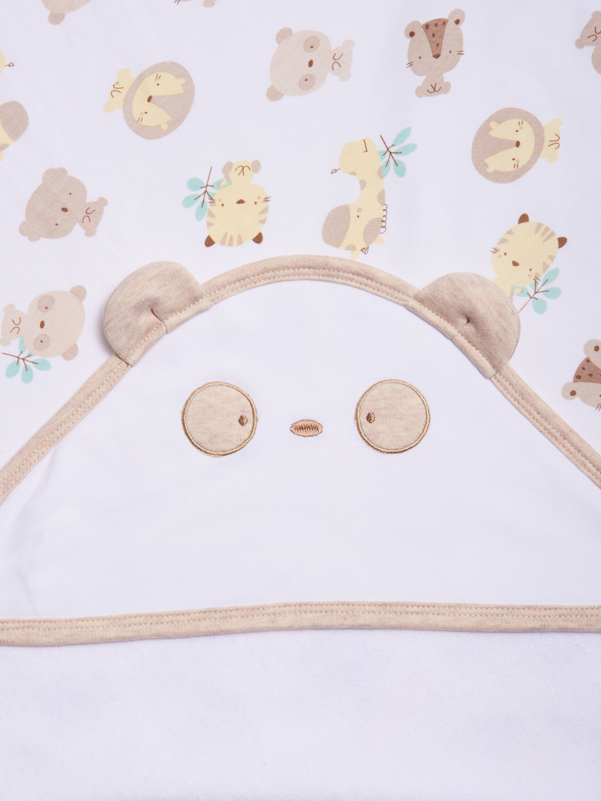 Avvolgente asciugamano con la quale potrai asciugare il tuo neonato dopo il bagnetto. Tessuto spugna 100% cotone. Elemento decorativo: ricamo e orecchie 3D. Questo accessorio fa parte del corredino composto da tutti gli articoli indispensabili per il tuo neonato.