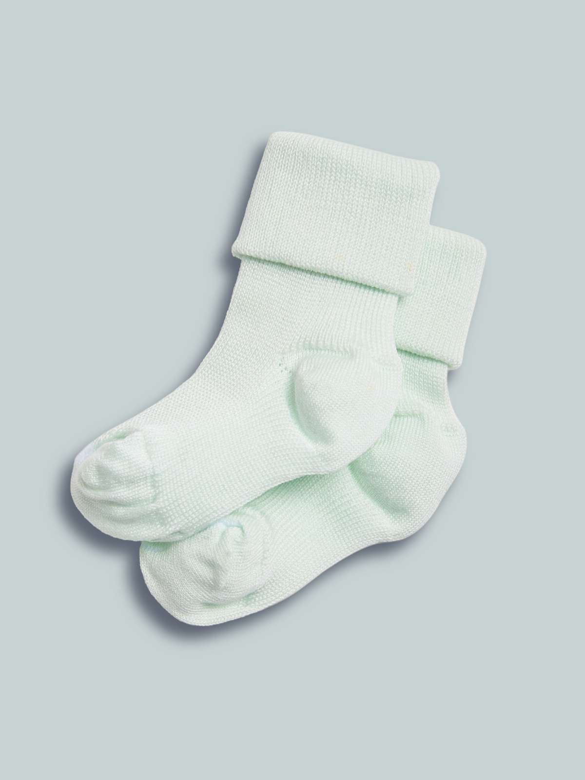 Calzino primi giorni in costina con risvolto che non stringe, ideale per chi ha la pelle piรน delicata.