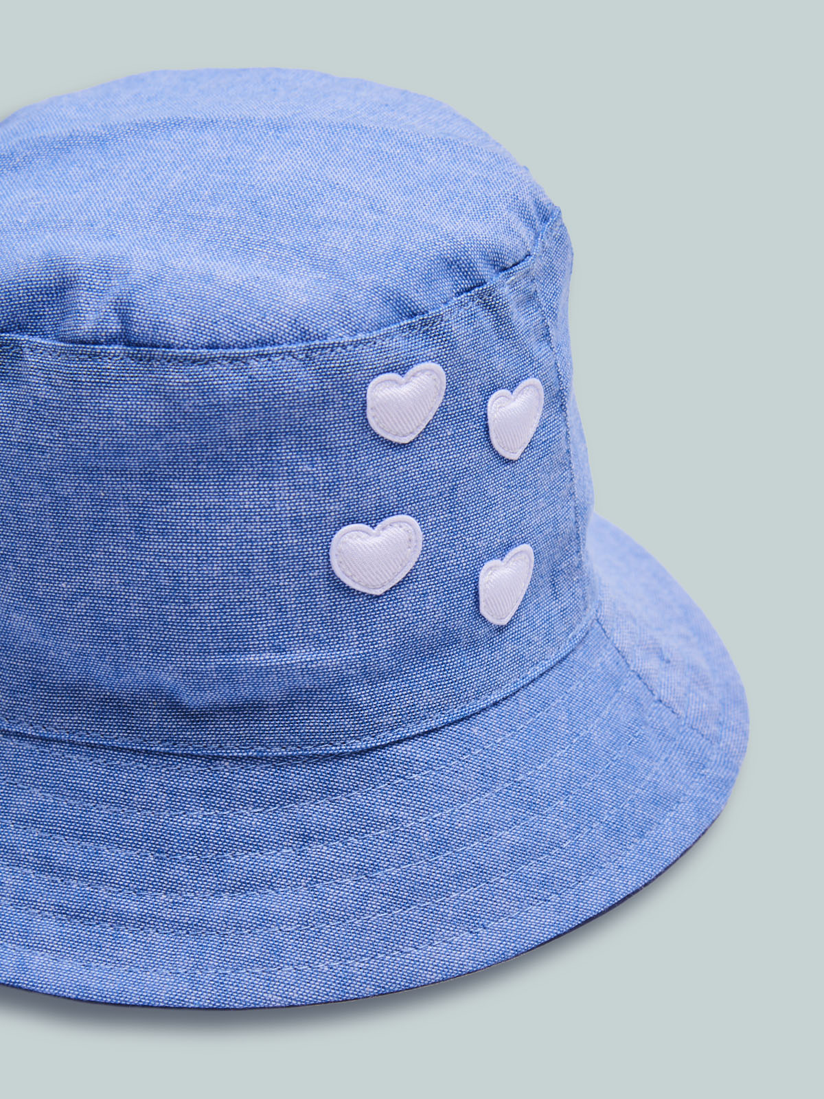 Cloche in morbido chambray, foderato in morbida mussola di cotone. Ideale per proteggerla nelle giornate estive.