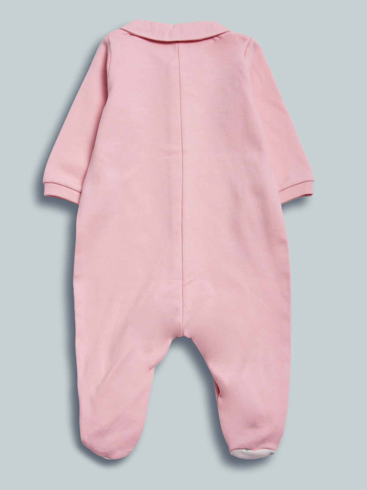 Tutina in caldo cotone, collo rotondo. Apertura davanti ed entrogamba con bottoncini a pressione per agevolarne l’indosso. Ricamo fiore e farfalle con applicazioni. Tutina simpatica, indispensabile e perfetta per lo stile di tutti i giorni!