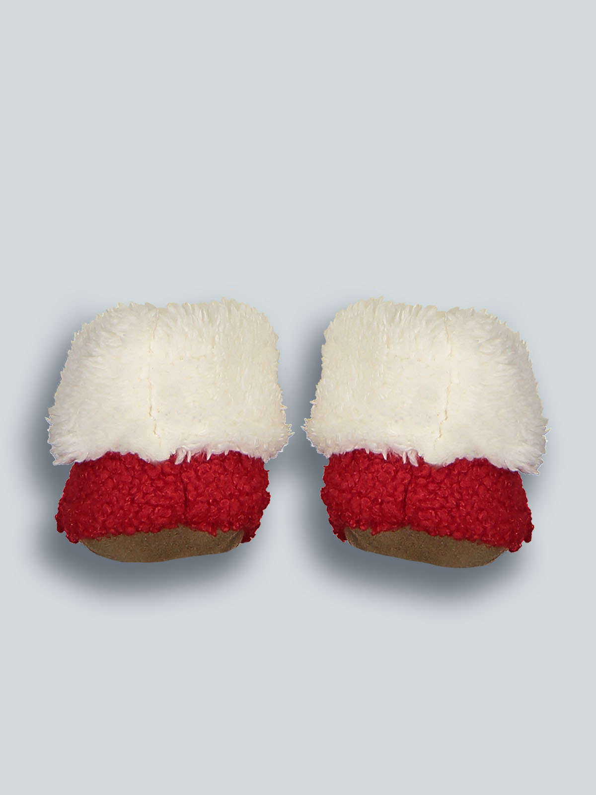 Babbuccia Babbo Natale in morbido peluches. Calda pantofola per neonato da utilizzare nel periodo natalizio. Non perderti questo originale accessorio.