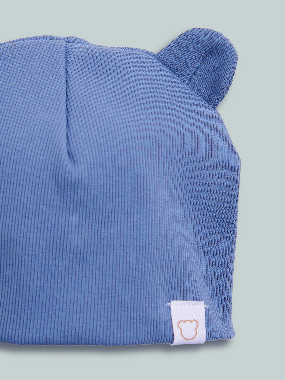 Cuffia in morbida e confortevole costina con orecchie 3D, etichetta sul lato. Ideale da indossare nelle fresche giornate primaverili.