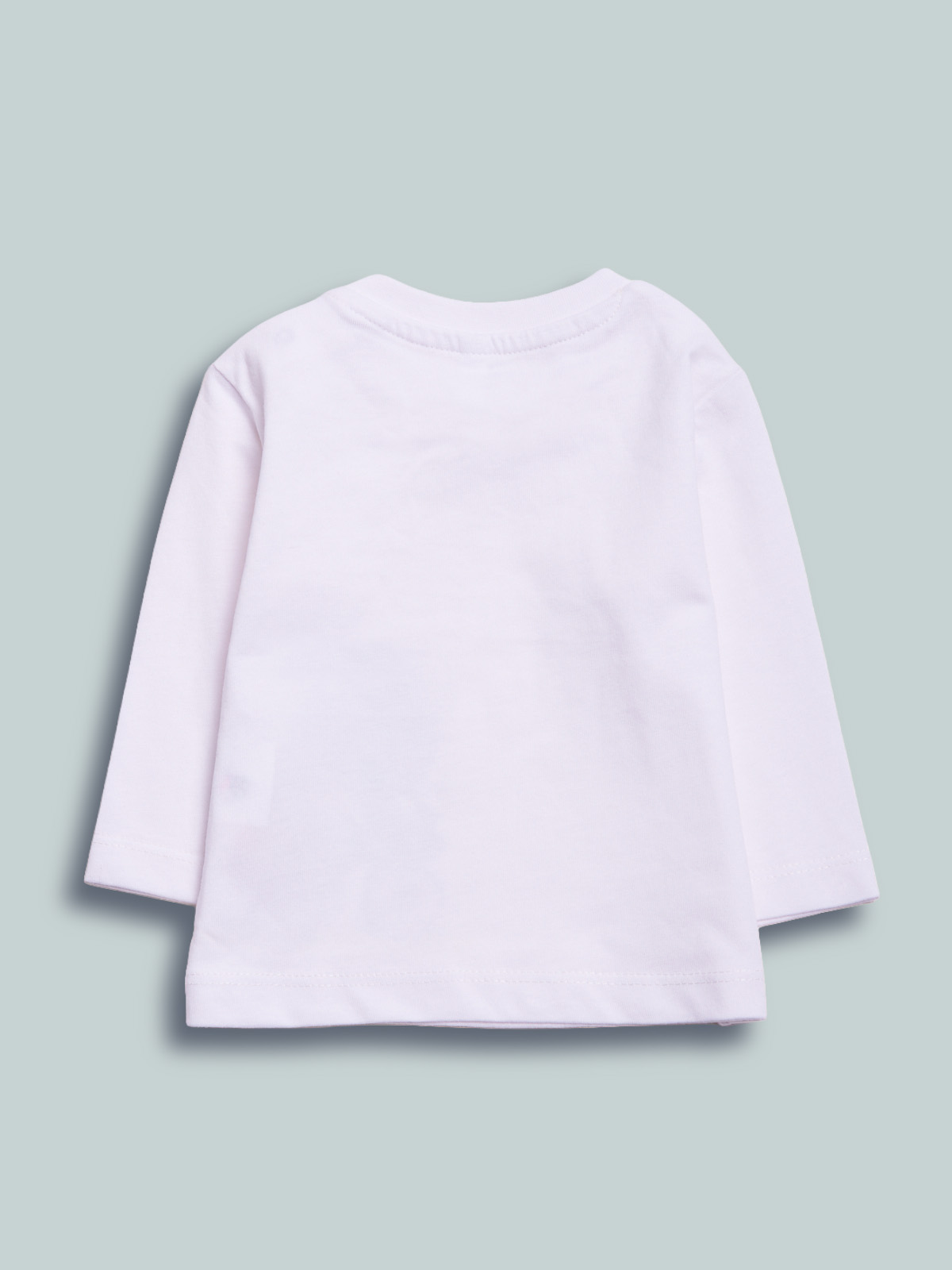 Tshirt manica lunga in cotone. Pratica apertura su spalla con bottoncini a pressione. Stampa davanti. Divertente e facile da abbinare.