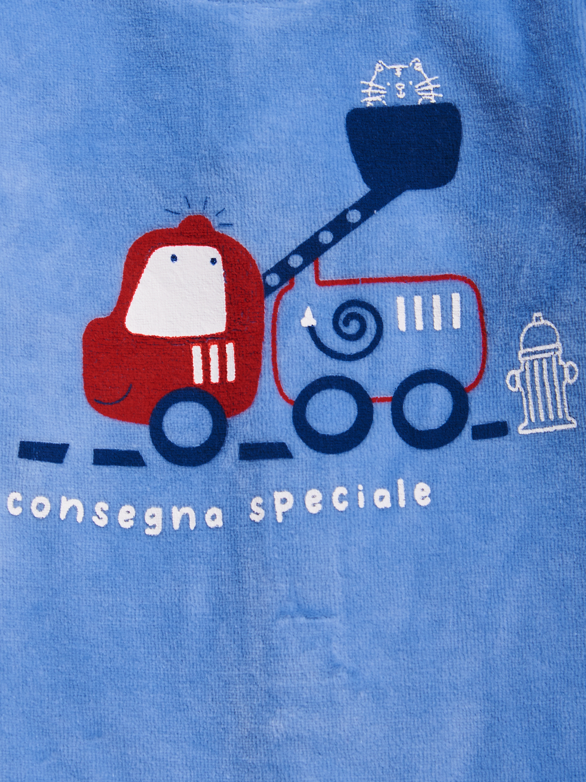 Tutina a maniche lunghe in ciniglia. La vestibilitร  รจ morbida e pratica grazie a bottoni a pressione sul retro e sul cavallo. Il capo รจ decorato da una simpatica stampa. Questo pigiama fa parte del corredino composto da tutti gli articoli indispensabili per il tuo neonato.